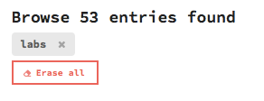 The number of entries found is displayed, as well as any additional text search or filter results view settings. The filters can be removed by selecting each, or select the Erase all to remove all filters.