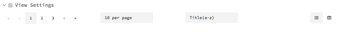_ View Settings to select number of page, results per page, sorting, and view format